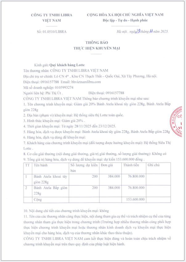 THÔNG BÁO THỰC HIỆN KHUYẾN MÃI (28/11/2025)